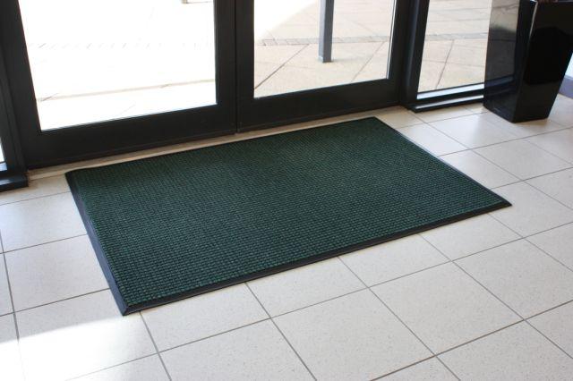 Entrance mats absorb soil and water while helping to keep dirt and debris at the door and out of the building. Entrance mats may be positioned either inside of an entryway (Carpet Mats) or outside an entryway (Outdoor Entry Mats). The ISSA has estimated that 70-80% of dirt comes in through the doors of the facility. For every pound of dirt that gets tacked into a facility, it costs approximately $600 to remove it. Entrance mats reduce dirt, debris and contaminants, helping to keep the facility clean.